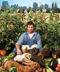 8月8日凌晨,一場突如其來的龍卷風(fēng)襲擊了美國城市紐約。對于大部分紐約人來說,這不過八月里一次異常的氣候現(xiàn)象,但住在布魯克林的男子曼尼·霍華德卻在忐忑不安中度過了一個不眠之夜。整個漫長的夜晚,他都在擔(dān)心自家后院種植的蔬菜會不會被雨水淹沒,養(yǎng)在后院里的雞和兔子明天是否還在。8月,對于霍華德來說是一個特殊的月份,因為他將在這個月里體驗一種和以往完全不同的生活,他將不再光顧超市和商店,他吃的所有食物都要從他后院里的那個農(nóng)場獲得。