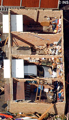 據英國《每日郵報》報道,這次風災是從當地時間早上6時20分左右開始的,每個龍卷風僅持續90秒,風速達每小時65英里(約合105公里)。