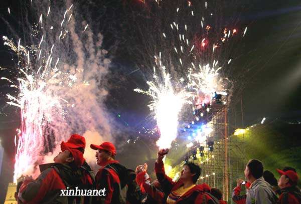 9月25日,2007年世界夏季特殊奧林匹克運動會圣火抵達中國并開始傳遞活動。圖為在北京舉行的火炬授予儀式現場。新華社記者張鐸攝