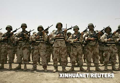 5月13日,伊拉克士兵在首都巴格達的塔季美軍基地列隊手持美國軍隊發(fā)的新步槍。當(dāng)天,美國軍隊向伊拉克軍隊分發(fā)了800支M-16和M-4步槍。這是美國對外軍售計劃的一部分。新華社/路透