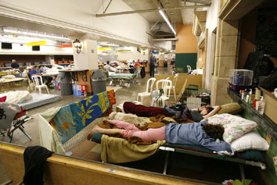 2007年10月23日,因大火撤離的加州居民。(英國媒體圖)