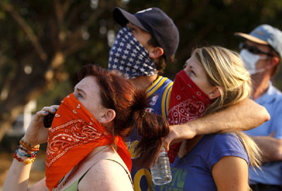 10月23日,加州州長施瓦辛格已經(jīng)下令出動1500名國民警衛(wèi)隊員協(xié)助救火,鄰近的州也同時派出消防員及救火設備增援。