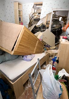 據英國《每日郵報》報道,16日凌晨1點半左右,這輛寶馬5系轎車沖進貝德福德郡里奇蒙特(Ridgmont)村莊里的一戶人家,車子穿過房屋內的過道又撞碎安娜臥室的墻。臥室內的衣柜被撞倒在安娜的床邊,但這恰好意外地形成一道“保護墻”,使安娜沒有被碎磚塊和瓦礫砸到,而只受了一些皮外輕傷。