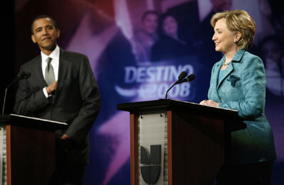 美國大選兩大熱門:希拉里(右)與奧巴馬(左)。(資料圖片)