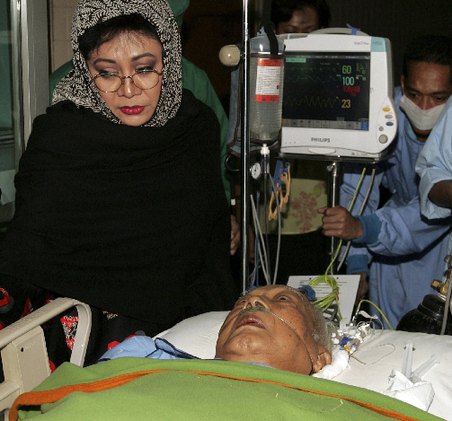 2008年1月8日,蘇哈托在醫院接受救治,身旁是他的女兒
