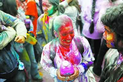 印度教的傳統大節“胡里節”(也叫“灑紅節”)是印度人慶祝春天開始的傳統節日,也是印度全國性節日。它源于古人期盼豐收的活動,在每年2月至3月間舉行。節日期間,上至達官顯貴,下至尋常百姓,都載歌載舞迎接春天的到來。按照傳統習俗,人們不僅給自己的臉上和身上涂上顏料,還會友好地向別人身上拋撒彩色顏料和粉末以示祝福,霎時間,人人都變成濃墨重彩的“大花臉”,衣服也都變得色彩斑斕。據說,在此期間,人們可以大聲說臟話,甚至罵人,表示對壞人的唾棄。而現在,“胡里節”已演變成人們消除誤解和怨恨,摒棄前嫌,重歸于好的節日。