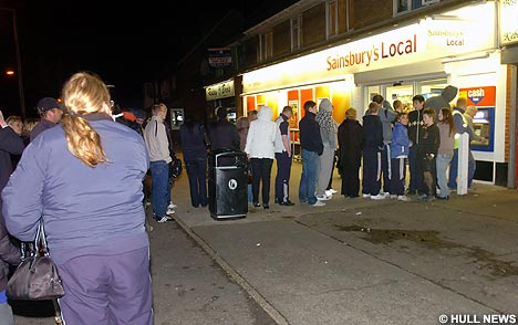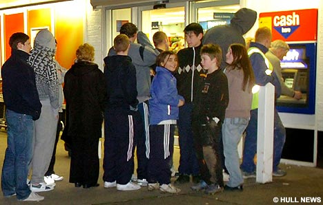 英國赫爾市的多個取款機出現“取一贈一”的故障,居民排隊取款。