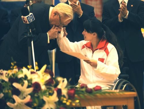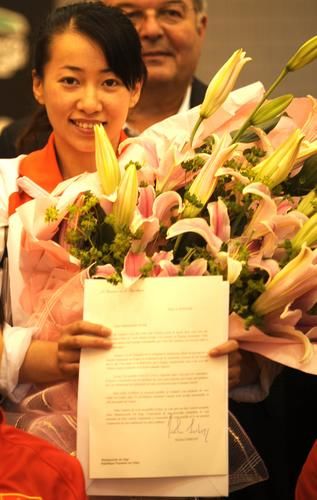 中國日報網環球在線消息:來華訪問的法國參議院議長克里斯蒂安·蓬斯萊21日上午抵達上海,前往上海市殘疾人體育訓練中心,專程看望奧運火炬手金晶,并轉交了法國總統薩科齊致金晶的慰問信。