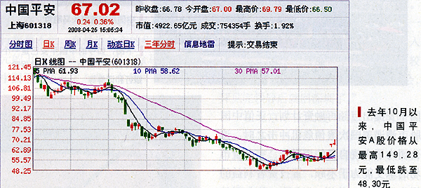 中國日報網站環球在線消息:中國平安保險(集團)股份有限公司(以下簡稱中國平安)不久前公布的年報顯示:公司董事長馬明哲去年的年薪為稅前6616萬元,平均每天薪酬18.12萬元,創下了國內高管年薪的最高紀錄。而中國平安的股價則由頂峰時的149.28元一路下滑,最低曾跌至48.30元。一時間,損失慘重的股民們對如此強烈的反差議論紛紛。