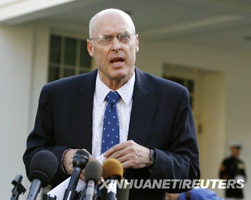 9月29日,美國財政部長保爾森在白宮與布什總統舉行會晤后向新聞界發表講話。新華社/路透