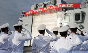 據悉,二○○九年新年第一天,中國海軍護航艦艇編隊“武漢”號導彈驅逐艦、“微山湖”號綜合補給艦也都舉行了升國旗儀式。