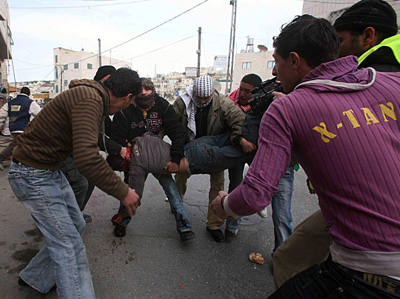 1月16日,在約旦河西岸城鎮希伯倫,一名參加抗議活動的巴勒斯坦少年頭部中彈身亡。