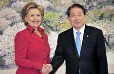 希拉里與韓國外交通商部長官柳明桓會面