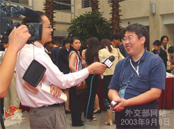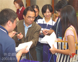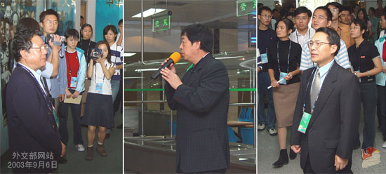 中國日報網環球在線消息:2003年9月6日上午,外交部以“走進外交部”為主題,舉辦了首次“公眾開放日”活動。有來自北京大學、清華大學、中國人民大學和北京理工大學四所高校學生、外交部網站“中國外交論壇”部分資深熱心讀者及“外交部網站形象設計大賽”獲獎者,共