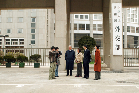 第六期外交講壇嘉賓在外交部大門前接受采訪