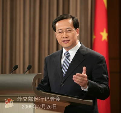 中國日報(bào)網(wǎng)環(huán)球在線消息:2009年2月26日,外交部發(fā)言人馬朝旭舉行例行記者會,主要就中國與有關(guān)國家雙邊往來、美國務(wù)院發(fā)表國別人權(quán)報(bào)告等答記者問。