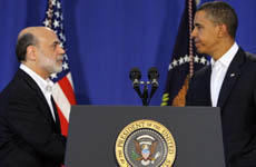 中國日報網環球在線消息:據英國媒體報道,美國白宮表示,奧巴馬將于8月25日再次提名伯南克擔任美聯儲主席,并稱贊他在處理經濟危機時所采取的“大膽行動”。