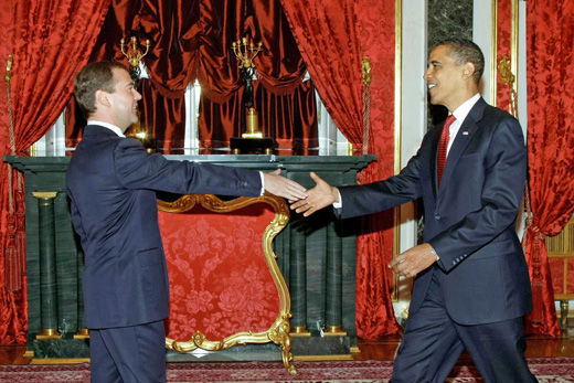 美國總統奧巴馬向俄羅斯總統梅德韋杰夫伸出“友誼之手”