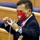 在泰國議會下議院,一名反對黨議員手持彈弓、戴著口罩擺出一副對陣的架勢參加辯論。 >> 詳細