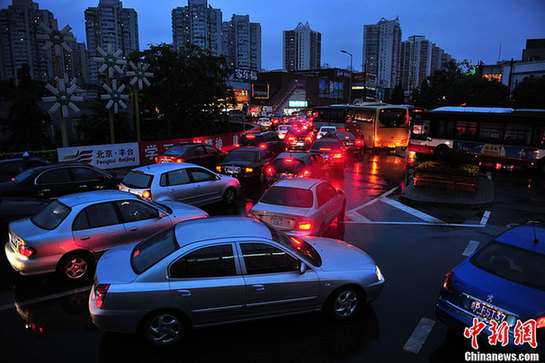 9月25日晚,即將進入“史上最長黃金周”的北京在9月的最后一周迎來了全年的“最堵周”。當日中午前后,北京大部出現(xiàn)降雨,局地雨量較大,能見度較低,加上節(jié)前交通流量增大,傍晚全市路網(wǎng)交通指數(shù)已經(jīng)達到8.7,處于嚴重擁堵狀態(tài)。根據(jù)北京市交通委的預測,受中秋、國慶雙節(jié)來臨以及高速路免費通行的影響,北京本周將進入“全年最堵周”。從25日傍晚提前開始的“擁堵周”,交通晚高峰提前達到中度擁堵級別,峰值已進入嚴重擁堵級別。中新網(wǎng)記者金碩 攝