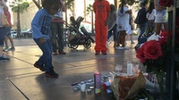 當地時間10月3日,人們在百樂宮(Bellagio)酒店前的人行道上獻上鮮花、點起蠟燭,很多人留下祈福的留言,為在此次事件中喪生或者受傷的人們祝福祈禱。