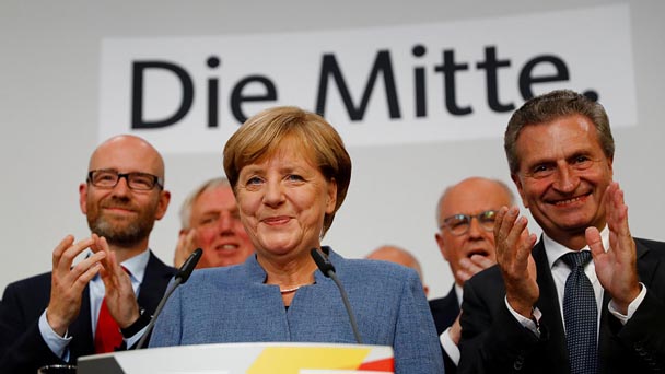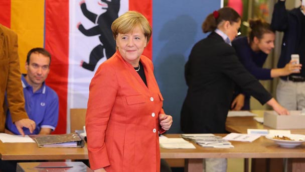 根據(jù)德國電視一臺當晚21時50分公布的最新出口民調(diào)顯示,默克爾領導的聯(lián)盟黨獲得32.5%的選票,領先其他政黨,獲得連任。