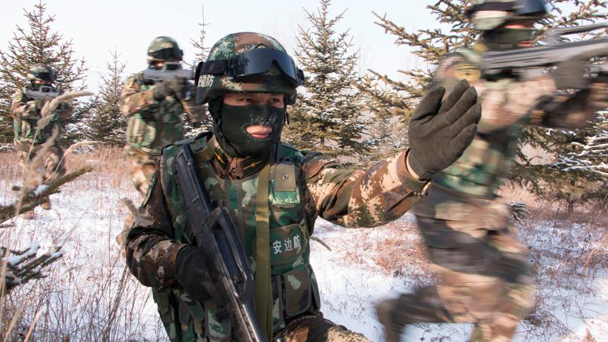 官兵們深入林區等復雜地形,在零下20多度的條件下進行野外搜捕、戰斗班組隊形、戰術演練等實戰科目訓練。