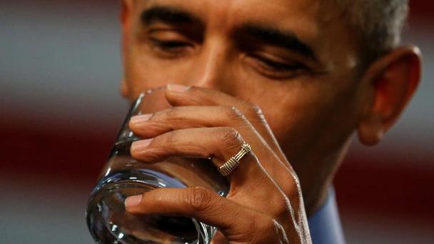 美國總統奧巴馬5月4日到訪飽受鉛水危機困擾的密歇根州弗林特市,當眾喝下過濾水,證明它是安全的。
