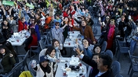 中國游客使用紙制小碟和木筷品嘗了炸雞。有的人性子急用手拿著吃,也有的人可能是炸雞太辣用手朝嘴煽風,還有的人拿著喝完的罐裝啤酒大叫著“再來一罐”。