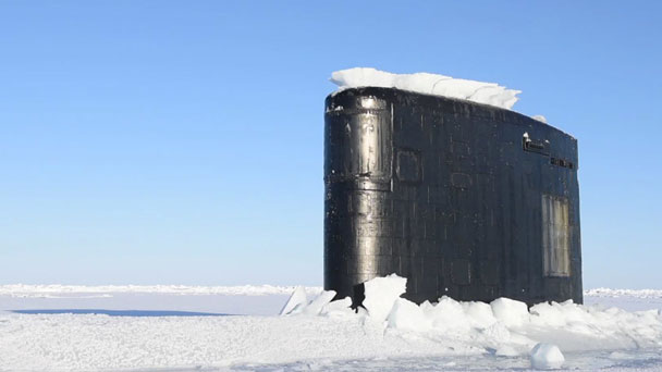 美國海軍“棘鬣魚”號(hào)訓(xùn)練營的一段視頻曝光,真實(shí)記錄了核潛艇在在北冰洋海軍基地里破冰而出,場(chǎng)面壯觀無比。