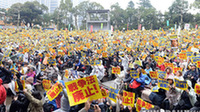 沖繩美軍基地的一名海軍士兵日前涉嫌在一家賓館里強(qiáng)奸一名日本女游客。當(dāng)?shù)貢r(shí)間21日,數(shù)千人聚集在美國海軍陸戰(zhàn)隊(duì)位于沖繩名護(hù)市的施瓦布軍營前,對(duì)此事進(jìn)行抗議。