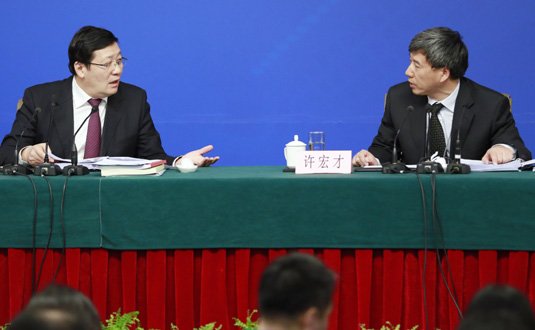 農業部部長韓長賦3月7日上午在十二屆全國人大四次會議新聞中心舉辦的新聞發布會上說,糧食問題在13億的人口大國,始終是大問題。中國糧食生產能力增強了,庫存也增加了,有些地倉庫糧食都放不下。