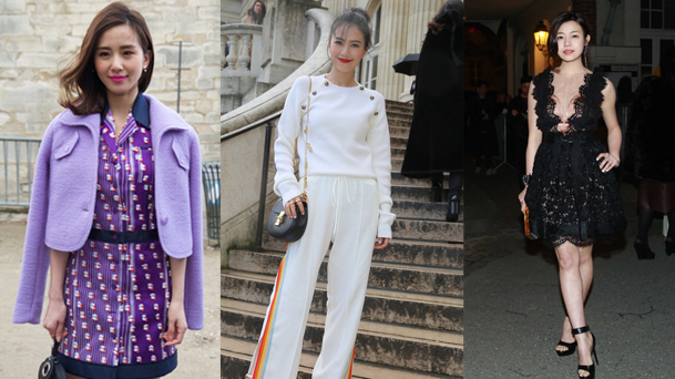 高圓圓白色針織毛衣搭配丸子頭,紅唇格外搶眼。劉詩詩延續以往優雅、淡然風格,一身紫色倍顯氣質,同色系唇膏非常點睛。陳妍希也突破以往,深V搶鏡。