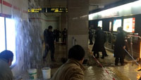 1月25日18點左右,上海地鐵1號線錦江樂園站站臺內的屋頂突然漏水,工作人員處理積水同時關閉部分車廂出口。