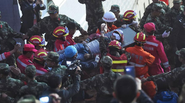 第一個被救出的受困者可以說話。這名被救者叫田澤明,男,重慶市巫山縣人,正是昨天下午公布的失聯名單中第十六位失聯者。