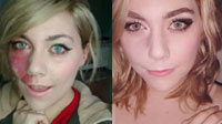 英國(guó)23歲女子哈福德右臉長(zhǎng)有一大塊紫紅色胎記,近日她鼓起勇氣,上傳素顏?zhàn)耘恼盏缴缃痪W(wǎng)站,宣布不再化妝遮“瑕”。