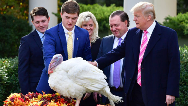 當地時間11月21日,美國華盛頓的白宮舉行一年一度的感恩節火雞赦免儀式,總統特朗普在儀式上赦免了一只名叫“鼓槌(Drumstick)”的火雞。