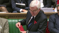 英國財政大臣奧斯本11月25日向英國議會提交新的政府開支計劃,反對黨工黨影子財政大臣麥克唐奈拿出一本《毛主席語錄》教訓他,場面令人驚訝。