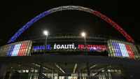17日晚,法國和英格蘭足球友誼賽如期在倫敦溫布利球場舉行。比賽開始前,英國首相卡梅倫、威廉王子、英國足總主席戴克、法國國家隊主教練和全場觀眾一起高唱法國國歌,并敬獻鮮花,表達對巴黎恐怖襲擊遇難者的哀悼。