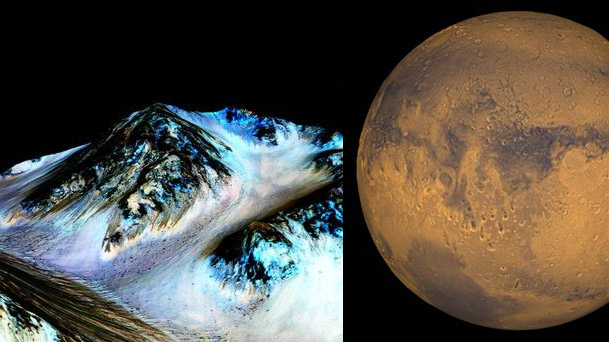 9月28日,在美國首都華盛頓,這張由美國航天局和亞利桑那大學聯合發布的圖片顯示,火星山丘上的“季節性斜坡紋線”是火星表面有液態水的有力證據。火星是太陽系中最像地球的行星,而液態水是支持生命存在的必要條件,新發現無疑再次激起人們對火星生命的遐想。