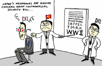 日本政治通過安保法案,寧當無視歷史的“大近視”,引發(fā)亞洲鄰國的抗議。