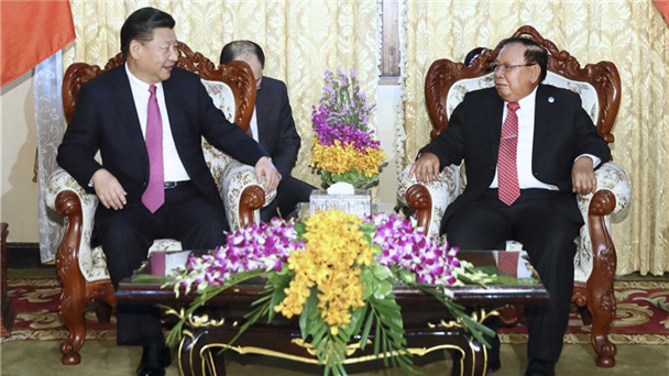中共中央總書記、國家主席習近平13日在萬象會見前老撾人民革命黨中央委員會總書記、國家主席朱馬里。