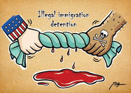 美國(guó)非法移民拘留所對(duì)非法移民剝削,每天提供1-3美元超級(jí)低薪,真是名副其實(shí)的“吸血鬼”。
