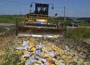綜合外媒報道,當地時間8月6日,俄羅斯銷毀數百噸奶酪、豬肉、西紅柿等禁止進口的農產品,這些農產品或被焚毀,或被拖拉機軋毀。