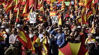據(jù)美國中文網(wǎng)報道,當?shù)貢r間10月29日,大約30萬西班牙民眾走上巴塞羅那街頭,許多人手中揮舞著西班牙國旗,呼吁西班牙統(tǒng)一,反對加泰羅尼亞自治區(qū)獨立。