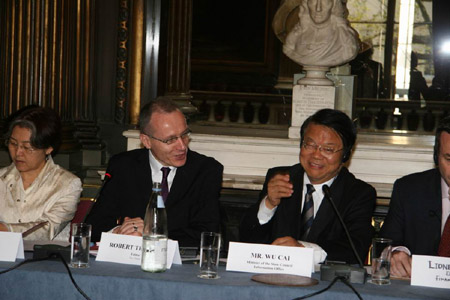 參加“中英媒體高層論壇”的中英兩國主流媒體人士正在進行討論(攝影:陳發奮)