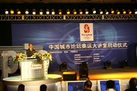 由首都科學(xué)決策研究會(huì)、北京國(guó)際城市發(fā)展研究院共同發(fā)起,北京市朝陽(yáng)區(qū)人民政府主辦、中國(guó)傳媒大學(xué)承辦的“中國(guó)城市論壇奧運(yùn)大講堂”于9月20日舉行了隆重的啟動(dòng)儀式。來(lái)自全國(guó)80多個(gè)大中城市代表、少數(shù)民族代表、社區(qū)自愿者和外國(guó)友人共300多人出席了會(huì)議。 |