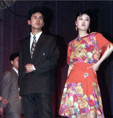 男生西服領(lǐng)帶,女生裙子前高后低,