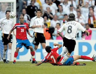 對于6月10日晚的世界杯揭幕戰而言,這支激情洋溢的世界杯會歌,似乎比那首旋律悠揚的主題曲更帶有某種寓言性——“慶祝這一天”,一個令球迷為攻勢足球奔騰狂歡的難眠之夜,一個讓揭幕戰“魔咒”瞬時灰飛煙滅的進攻神話……拉姆的首發閃電射門、弗林斯的超級遠射以及克洛斯和萬喬普的梅開二度,拉響了本屆世界杯“希望、信念與夢想”的號角……