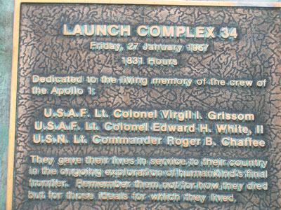 | Apollo 1 plaque that is attached to Launch Complex 34 |